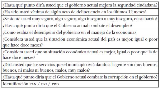 En México, según Ulises Beltrán, “todos los estudios de votantes coinciden en destacar la importancia de las percepciones sobre el estado de la economía en la elección entre el partido en el poder y la oposición”.16 El autor sugiere que la popularidad de los gobernantes está ligada al desempeño de la economía o, por mejor decir, a la percepción que tengan las personas sobre el desempeño económico nacional.