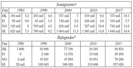 La mayoría de estos problemas tiene su origen en los sesenta, cuando el proceso de descolonización en el África atrajo millones de inmigrantes a Europa. Pero, entre los ochenta y los noventa, Escandinavia recibió una nueva oleada de inmigrantes y refugiados originarios de la Europa del Este -en especial, de los Balcanes y el antiguo bloque soviético-, la cual se ubicó en los países nórdicos por el respeto a los derechos humanos y las prerrogativas del Estado de bienestar. Sin embargo, en la última década, esta situación se ha agudizado a partir de tres eventos: la recesión económica en 2008, la primavera árabe acaecida entre 2010 y 2013, pero, sobre todo, por la crisis de los refugiados en 2015. Tales sucesos han expulsado a millones de personas de su tierra natal con destino a Europa, motivados por la pobreza, la persecución, la guerra y el terrorismo42 (véase Cuadro 2, en la siguiente página).