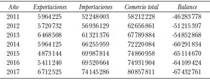 El intercambio económico entre México y China mantuvo una tendencia al alza y paralelamente un crecimiento consecuente del déficit para México. La composición de las importaciones de México tuvo un ligero cambio respecto al aumento de bienes intermedios. La gran preocupación en varios sectores del país fue el déficit comercial y el bajo valor agregado de las exportaciones mexicanas a China. Lo que se ha observado es un aumento de las exportaciones de carne de cerdo y de tequila. Pero el 74.5% de las importaciones originarias de China son de bienes intermedios, y 11.2% son bienes de capital, gran parte de los cuales se utilizan en las industrias automotriz y electrónica para exportarlos, ya ensamblados, en autos y dispositivos electrónicos, al mercado de Estados Unidos, y una pequeña parte se queda en el mercado mexicano, según Fernando Ruiz, director del Consejo Empresarial Mexicano de Comercio Exterior (COMCE).5 De acuerdo con la Secretaría de Agricultura (Sagarpa), las exportaciones del sector agropecuario al país asiático sumaron 321 mdd en 2017, lo que significó un incremento de 54%. De acuerdo con Sagarpa, los 10 productos agroalimentarios que más exporta México a China son: cerveza, harina de pescado, aguacate, algodón, moluscos vivos, langostas, materias pécticas, cueros y pieles de bovino, camarones y langostinos congelados, y tequila. Como es obvio, estos productos difícilmente pueden modificar el déficit comercial.