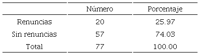 La variable explicativa principal es dicotómica e indica si algún contendiente a la candidatura a una gubernatura por el PRI durante el periodo de estudio renunció al partido antes, durante o después de que el proceso de designación de candidato oficial terminara. Por lo tanto, la variable toma valor de 1 si se observa una renuncia y de 0 en cualquier otro caso. Al ser una variable categórica, tiene que interpretarse sólo en términos de presencia o ausencia de renuncias. En consecuencia, los efectos asociados a esta variable indicarán cuál es el cambio en la variable de respuesta en presencia de renuncias.