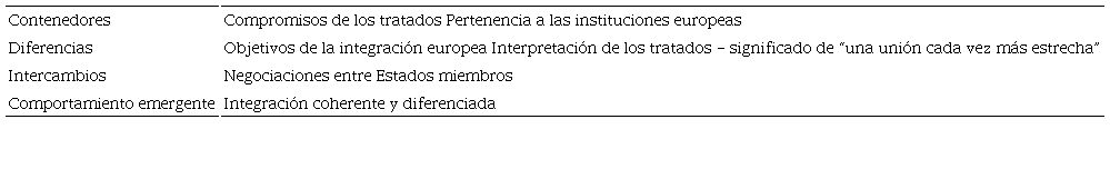 Cabe mencionar que este proceso de adaptación no se limitó al caso del Reino Unido. La ampliación del número de Estados miembros y de zonas cubiertas por la integración europea tiende a aumentar las posibles “diferencias significativas” entre los agentes del sistema y, por tanto, a impulsar más “intercambios transformadores”. La integración diferenciada, especialmente en la forma de cláusulas de exclusión, surgió como una acción adaptativa y una herramienta de organización propia para mantener unido el sistema de la UE.