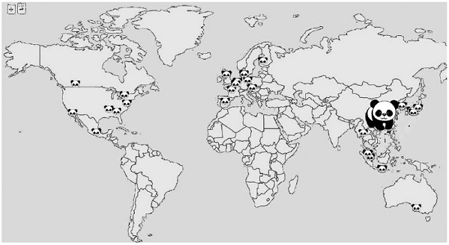 Por otra parte, la diplomacia del panda permite a la RP China suavizar negociaciones con naciones con las que suelen aflorar tensiones o de las que requiere ciertos bienes y materias primas estratégicas. Para los países que reciben a los famosos mamíferos, existen beneficios económicos evidentes emanados de los negocios que cierran con el gigante asiático, su imagen internacional como benefactores de un mamífero que apenas recientemente salió de la lista del peligro de extinción, además del atractivo que reviste ser hogar, aunque sea de manera temporal, de esta especie. Desde una visión geopolítica, el mapa 2 muestra que la RP China ha favorecido la diplomacia del panda en sus relaciones con Europa, América del Norte, el sureste de Asia y Oceanía. Cabe destacar que esta diplomacia no es válida para países de bajos ingresos, lo cual se explica por la inversión y las adecuaciones que se requieren en los zoológicos para albergar de manera segura a los pandas. Asimismo, la “renta” de pandas tiene un costo de un millón de dólares al año por ejemplar, por lo que la pareja de mamíferos implica la erogación de dos millones, recursos que el gobierno chino señala que emplea para la investigación y la conservación de la especie. Claramente esos costos, sumado a todos los cuidados que requiere, implican que sea muy difícil recibirla para los países en desarrollo.