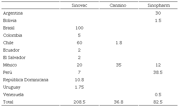 En América Latina, estas vacunas se han suministrado en condiciones favorables, incluyendo donaciones en casos excepcionales,58 así como en ensayos clínicos y alianzas para la manufactura local.59 Los contratos de adquisición en América Latina pueden apreciarse en el cuadro 1.