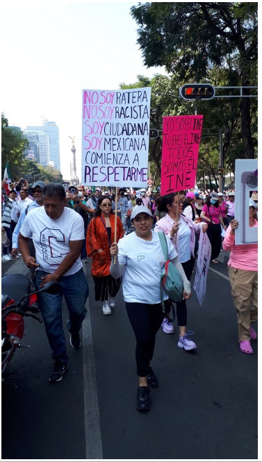 -“Ni fifís,40 ni corruptos ni clasistas ni racistas, somos mexicanos defendiendo al INE y a nuestras instituciones y al Estado de derecho”.