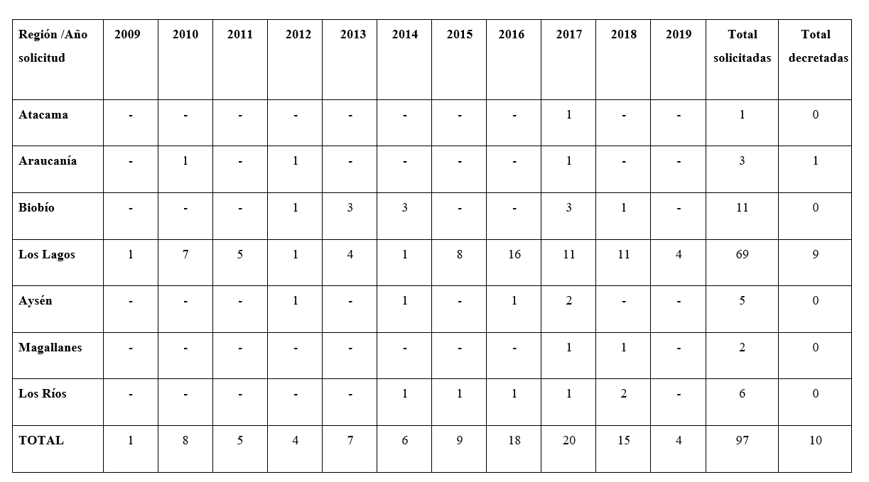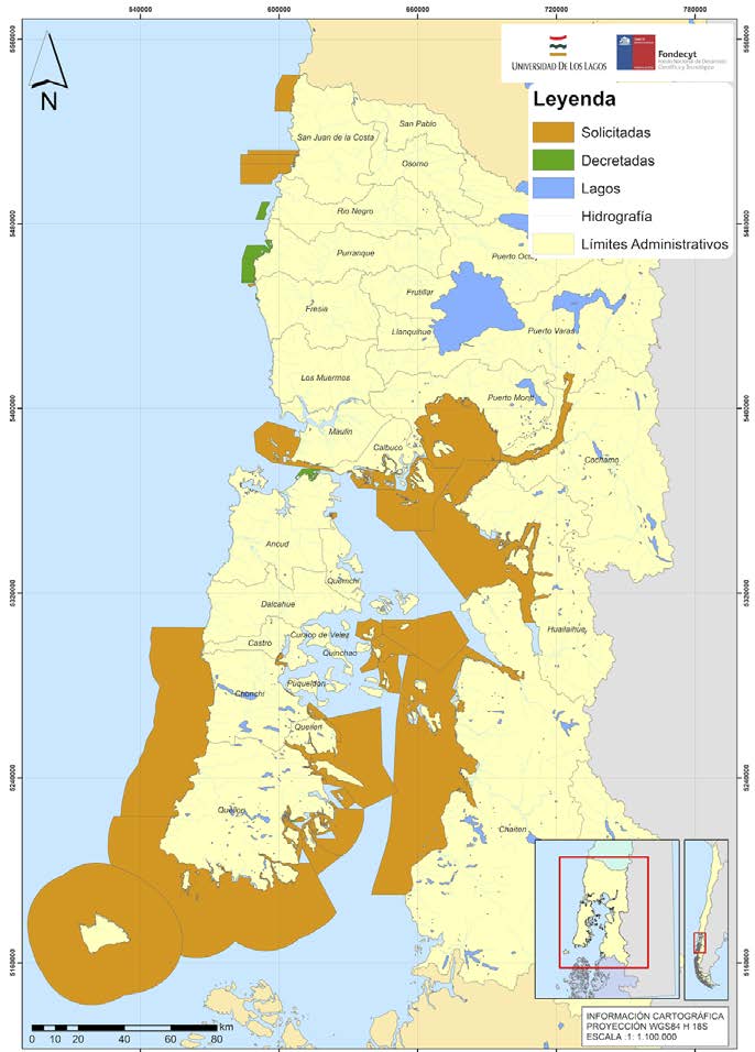 Mapa nº1 – ECMPOs en solicitudy decretadas en la Región de LosLagos, Chile.
