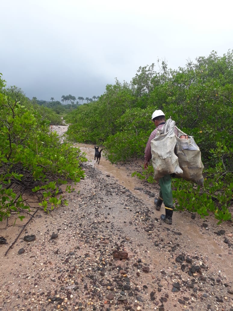 Pode-se dizer que o gaiamunzeiro Marcos é um importante articulador dessa discussão em São Francisco do Conde, implicado que está nesses dois espaços. Ele tem se engajado nas atividades de recuperação do mangue e da espécie guaiamum a partir da interlocução com alguns projetos e atividades da Unilab e da CPP. Na Unilab, Marcos tem atuado como instrutor de aulas de campo junto às disciplinas e projetos desenvolvidos por um dos autores deste artigo. Nessas atividades acompanha discentes, docentes e outros colaboradores em visitas a áreas de manguezal em Dom João e seu entorno, ensinando sobre os ciclos do guaiamum, técnicas e territórios de pesca, bem como estratégias de recuperação do mangue diante dos efeitos nocivos da indústria petroleira, do desmatamento das fazendas e da sobrepesca de guaiamum. De modo bastante particular e solitário, Marcos tem buscado replantar mudas de mangue vermelho (Rizophora mangle) em áreas de prainha, a princípio sem sucesso.