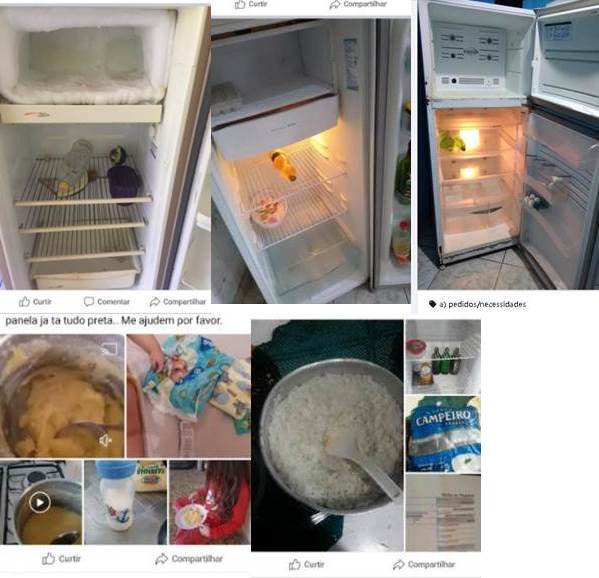 Como relatado, no momento em que foram proibidas imagens associadas a dor e sofrimento, começaram a aparecer muitas fotos de geladeiras e despensas vazias. Uma das administradoras referiu-se a esse fenômeno como uma “competição da geladeira mais vazia”, como ilustrado pela sequência de fotos reproduzidas na sequência, extraídas de distintas postagens, todas de julho de 2020.