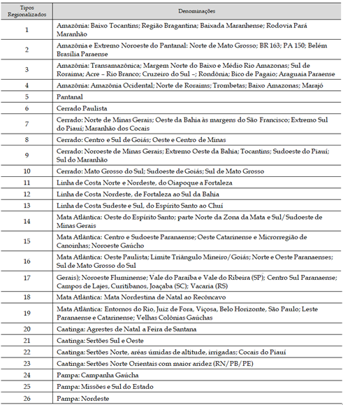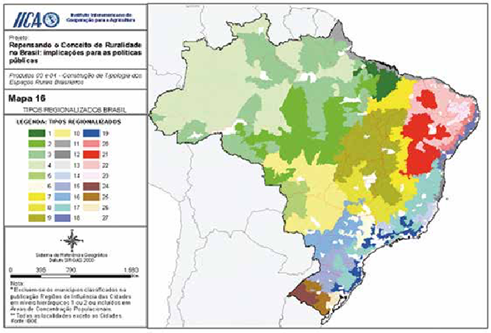 A partir de uma iniciativa de diversas instituições brasileiras ou sediadas no Brasil, entre as quais o IICA, realizou-se alguns anos atrás um amplo estudo coordenado por Tania Bacelar, voltado a problematizar a noção de rural no país e a construir, com base nos microdados do Censo Demográfico, de informações do Censo Agropecuário e considerando os diferentes biomas existentes no país, uma nova tipologia dos espaços rurais (ARAÚJO, 2015; BITOUN et al., 2017).