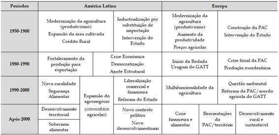Um paralelo do contexto latino-americano com as transformações rurais europeias é também tentado no Quadro 2, a partir do trabalho de Delgado et al. (2013).