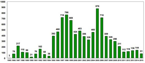 No caso do Pronera, a luta pela reforma agrária está claramente vinculada tanto ao nome como à fala de seus atores principais. No entanto, o aumento da instrução formal para as bases dos movimentos sociais do campo não significou necessariamente um avanço de sua capacidade de articulação política e de mobilização. É ainda cedo para afirmar qualquer coisa, mas é evidente que alguns militantes desses movimentos sociais se “reconverteram” para uma atividade formalmente mais pedagógica, coordenando e acompanhando cursos, e tornaram-se eles próprios professores de instituições de ensino, ou seguiram carreira na profissão em que se graduaram. Levantamento feito entre 1998 e 2010, demonstra que dos 450 mil jovens e adultos atendidos pelo Pronera, 2951 assentados e militantes de movimentos sociais do campo se graduaram em 20 diferentes cursos superiores e de especialização realizados em 21 estados da Federação.18 Seria importante verificar a trajetória dos egressos desses cursos para verificar em que medida eles se mantêm ou não vinculados a alguma militância política, mas é fato que desde 2002 o peso político dos movimentos sociais do campo foi diminuindo nos embates dentro do governo, como ocorreu nos casos da liberação do cultivo de transgênicos em 2003, e na aprovação do novo Código Florestal em 2012. Sua crescente fragilidade política se deve a processos de cooptação e de absorção de seus quadros pelo governo, mas, sobretudo, sob nosso ponto de vista, à drástica diminuição de criação de assentamentos a partir de 2007, o que comprometeu a renovação e ampliação de sua base social, como demonstra o quadro a seguir.