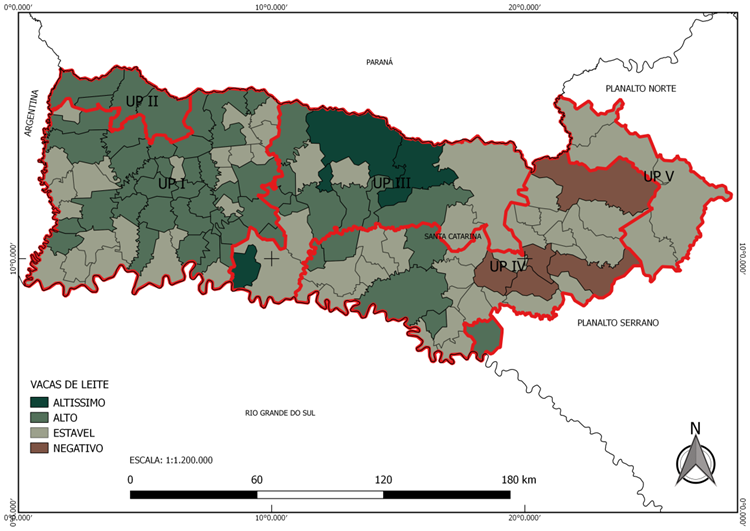 O número de vacas leiteiras teve um crescimento, ao longo dos 20 anos, consolidando-se a região em uma das principais bacias leiteiras do país. Este crescimento esteve diretamente ligado à substituição da suinocultura como principal atividade nas unidades familiares de produção, sendo possibilitado pelo acesso ao mercado através das embalagens TetraPark (TESTA et al., 2003), com a utilização da cerca elétrica como tecnologia de manejo dos animais e com a utilização do milho na forma de silagem para ração, ao invés do grão.