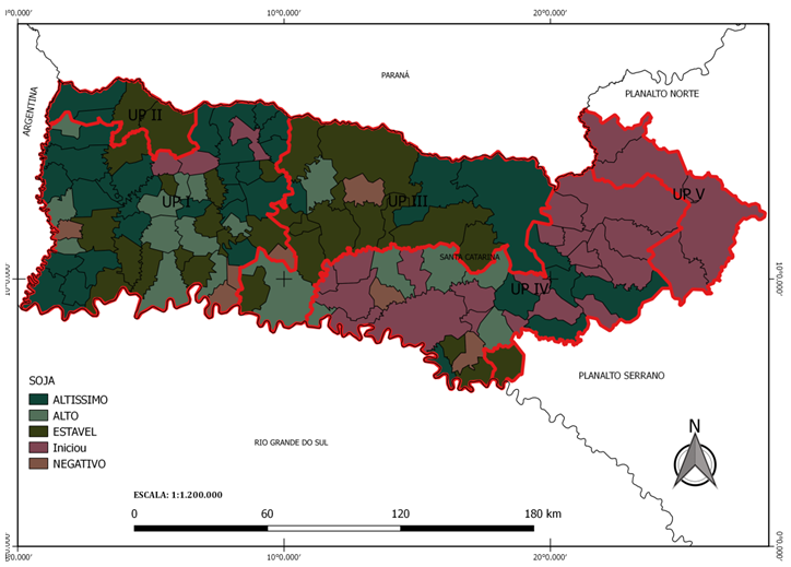 Destaca-se que nas Unidades III A e V esta expansão ocorre em áreas em que a vegetação nativa era a Savana e as Matas de Araucária. Na unidade IV, o aproveitamento das áreas mecanizadas em substituição ao cultivo do milho explica a expansão da área utilizada com a soja. Este é o motivo também da ampliação do cultivo nos demais municípios em que os dados não apresentam crescimento relativo.
