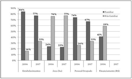 O penúltimo Censo Agropecuário realizado pelo IBGE, em 2006, renova as informações sobre a considerável desigualdade socioeconômica no meio rural brasileiro. Dos mais de 5 milhões de estabelecimentos rurais, 84% foram considerados agricultura familiar (segundo a definição da Lei Federal no 11.326/2006). Responsáveis pelo emprego de 74% da mão de obra rural, tais estabelecimentos ocupavam apenas 24% das terras disponíveis à agropecuária, em 2006. Por outro lado, a agricultura não familiar totalizou 16% dos estabelecimentos rurais, empregando 26% da mão de obra rural. Essa minoria latifundiária ocupava 76% das terras destinadas à agropecuária, além de receber 59% de todo o financiamento agrícola no período.