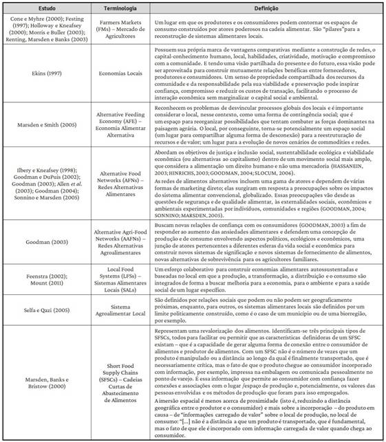 No Quadro 1 são apresentados os principais estudos, a terminologia (os principais termos) e as várias definições, bem como os Circuitos Curtos de Proximidade.