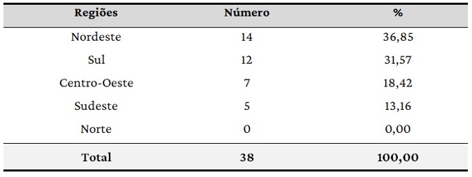 É importante sublinhar que a distribuição geográfica dos mercados digitais da agricultura familiar não é homogênea no território nacional. Na Tabela 4 observa-se que as Regiões Nordeste e Sul lideram as iniciativas, com 36,85% e 31,57%, respectivamente. As duas regiões se somadas perfazem mais de 68% dos sites e plataformas investigados. Em terceiro lugar, aparece a região Centro-Oeste, com quase 1/5 das iniciativas (18,42%) e a Região Sudeste, com 13,16%. Na Região Norte, por sua vez, não foi identificada nenhuma experiência na amostra, embora um dos canais de comercialização digitais analisados se chame AmazôniaHub, mas sua localização está na cidade de São Paulo (Quadro 3).