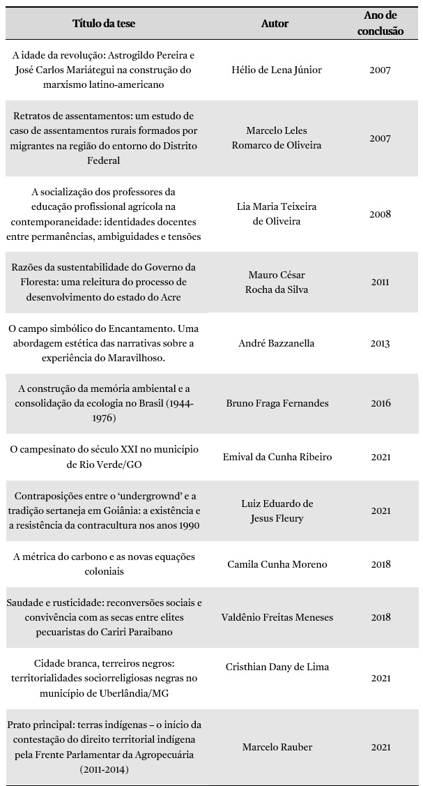 Na leitura dos Quadros 1 e 2 destaca-se a diversidade de temas de orientação de pesquisa como o imaginário de sertão, região, nação, do pensamento social brasileiro, mundo rural e cultura, literatura, gênero, até estudos de caso do campesinato, educação rural, assentamentos rurais e territórios indígenas. Nessa diversidade impressiona também a riqueza regional de temas e origem dos alunos e alunas: Pará, Acre, São Paulo, Rio de Janeiro, Minas Gerais, Paraíba, Piauí, Maranhão, dentre outros. O legado de orientações da professora Eli no CPDA firma na prática o compromisso dessa instituição com a interdisciplinaridade e o olhar heterogêneo para o rural brasileiro.
