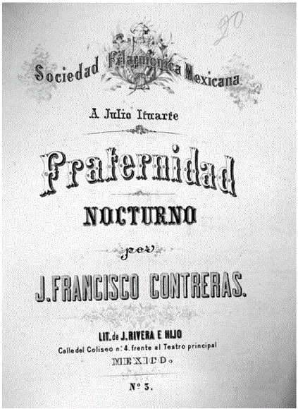 Un segundo periodo es el que va desde 1826 hasta 1844 cuando Jesús Rivera y Fierro estableció su importante imprenta. De esta época, que sigue siendo la menos estudiada de todo el siglo XIX, poseemos algunos ejemplos sueltos, por ejemplo las obras de José Antonio Gómez que han sido investigadas por John Lazos. Tales partituras denotan una impresión más precisa que la alcanzada por Elízaga, pero no dejan de ser un tanto burdas y en ocasiones, defectuosas.15 Varias de ellas aparecieron en publicaciones periódicas como El semanario de las señoritas mexicanas (1841), el Mosaico mexicano (1838) o en el Calendario de las señoritas mexicanas (1839) que hizo famoso a Manuel Galván. Si el caso de José Antonio Gómez es emblemático en tanto fue uno de los compositores más prominentes de la época, es claro que por aquéllas décadas la impresión de partituras mexicanas tenía todavía un largo camino por delante. Sin embargo, la tarea de Gómez como autor de tratados para aprender música y de colecciones de partituras no se vio obstaculizado por estas dificultades técnicas y tanto sus libros pedagógicos como la música impresa para acompañar su famoso Instructor filarmónico publicado desde 1842 así lo demuestran.