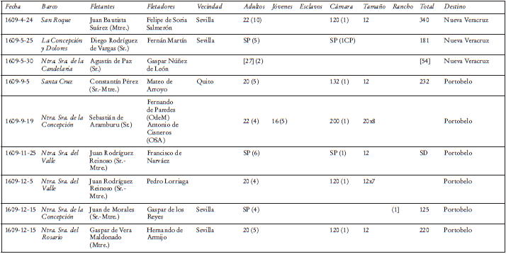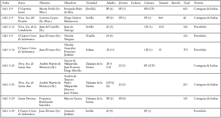 Por el momento, no estamos en disposición de establecer qué porcentaje suponen los pasajes entre los ingresos del naviero en la carrera de Indias. Las contabilidades de los señores de naos, o están perdidas o permanecen sin localizar. Algún ajuste de cuentas hemos compulsado entre los pleitos dirimidos ante la Casa de la Contratación, pero resultaron siempre balances parciales que no ofrecían referencia alguna a los pasajes. Solo podemos aportar —a modo de ilustración— algunas noticias sobre cuántos pasajeros pueden legalmente embarcar en los buques de la carrera, o cuántos aparecen registrados en tal o cual nave.