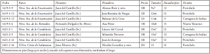 Una posibilidad intermedia consiste en el fraccionamiento del pasaje en dos plazos, pero ambos pagaderos en Castilla antes de la partida de la nave. El clérigo jiennense Miguel de Espinosa entrega al maestre Álvaro Conquero 30 ducados al contado por el viaje de 3 personas, comprometiéndose a retribuirle los 35 ducados restantes en Sanlúcar 8 días antes de la salida de la flota.111 El 12 de febrero de 1620 se otorga el fletamento entre Andrés Martín de Montoya, señor y maestre de la nao Nuestra Señora de la Consolación y San Francisco, y Bartolomé de Cívico, para pasar a Tierra Firme. El precio del pasaje monta un total de 1 650 reales, 800 de los cuales entrega en el momento, y el resto lo ha de hacer a finales de mes.112 Lo mismo sucede con el pasaje concertado justamente un año después entre Juan del Castillo, dueño de la nao La Candelaria, y Juan de Astorga, con la diferencia de que el segundo plazo se efectúa en Cádiz y a mediados del mes venidero.113
