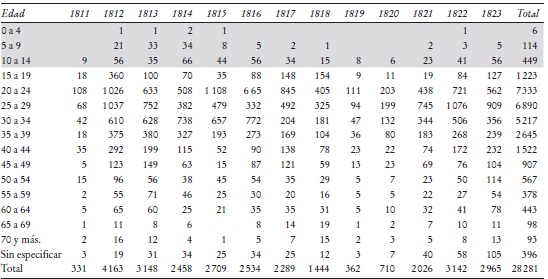 La presencia de enfermedades que presentan una sintomatología asociada con malestares infectocontagiosos de las vías respiratorias y gastrointestinales (fiebres, diarrea, pleuresía, etc.), por lesiones, heridas y, sobre todo, por resultas de conductas sexuales (gálicos), aunada a los estragos causados por los periodos de sobremortalidad de tifo de 1814 y de viruela de 1815,103 constatan los graves problemas endémicos y epidémicos que en salud pública padeció la ciudad y su población en el contexto de la independencia.