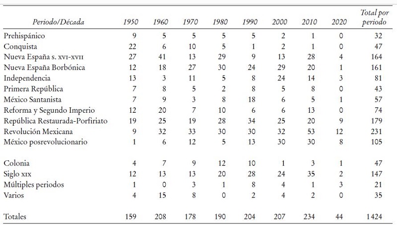 En su versión digital, Historia Mexicana ha migrado recientemente a la plataforma de código abierto para la gestión y publicación de revistas electrónicas OJS 3. Este nuevo formato permite reconstruir con mayor precisión y detalle las estadísticas fundamentales de la publicación en 70 años de trayectoria. A continuación se reproducen algunos cuadros y gráficas que resumen los totales de artículos por década, por periodo histórico, los totales de artículos, reseñas y demás secciones, los porcentajes de colaboradores por género y la presencia del mundo en la revista.