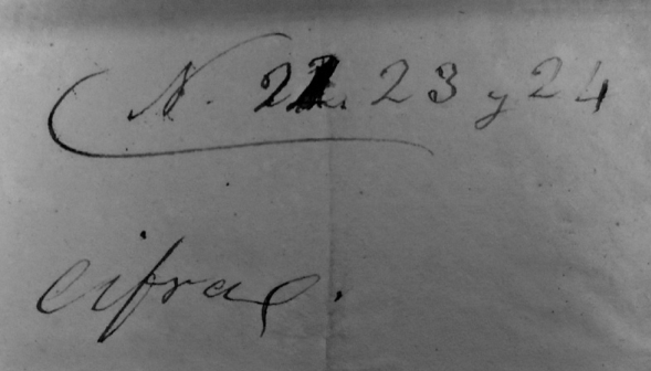 Mi lección es: “N. 21, 23 y 24 cifras”, y lo interpreto como “los despachos núm. 21, 23 y 24 están en cifra”, o bien “deben ponerse en cifra”. Ahora, en el legajo L-E-873 del AHGE, que reúne la mayoría de las comunicaciones de Cañedo durante su misión sudamericana, se aprecia un vacío entre la nota “principal” N. 20 (10 de agosto de 1832; f. 158) y la “principal” N. 24 (misma fecha; f. 159), sugiriendo por esa sola causa su encriptación original. Ese mensaje N. 24, sin embargo, no aparece oculto de ninguna manera. Acaso Almonte o quien haya escrito aquella brevísima nota se confundió en cuanto a la numeración de la correspondencia. Por otra parte, la búsqueda de los mentados criptotextos en el archivo personal de Juan de Dios Cañedo (AHGE L-E-299) resultó infructuosa, lo mismo que en legajos relativos a la misión centroamericana de Manuel Díez de Bonilla. Si Cañedo redactó al menos tres despachos en cifra o código, valiéndose de la tabla, ¿qué fue de ellos? ¿Los retuvo alguna censura postal, cayeron en manos de algún espía, o desaparecieron en la Cancillería, por algún motivo razonable, después de ser leídos? Haría falta una investigación especial para disipar este enigma.