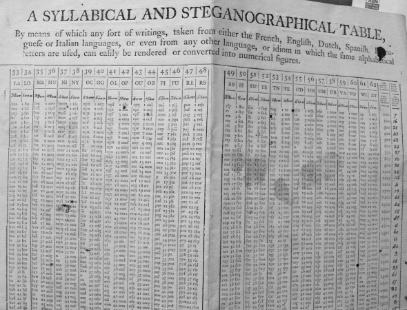 En el Archivo General de la Nación (AGN) de México el grupo documental “IV, c. 2610, exp. 026 (operaciones de guerra)” contiene una pieza (f. 19) bilingüe (inglés y francés) titulada “Tabla silábica y esteganográfica, por cuyo medio cualquier clase de escritos, tomados ya del lenguaje francés, inglés, holandés, español, portugués o italiano, o incluso de cualquier otro lenguaje o idioma en el que se usan las mismas letras alfabéticas, pueden ser fácilmente traducidos o convertidos a figuras numéricas”. Impresa, opistógrafa y doblada en cuatro partes, cada hoja asume aproximadamente el formato de un tradicional panfleto en quarto. En cuanto a su función específica, constituye un singular criptosistema destinado a la codificación de textos mediante equivalentes numéricos. Se trata de la única copia que existe en nuestro país -hasta donde sé-, y en la presente sección la analizaré histórica y técnicamente, procurando elucidar, además, cómo pudo terminar en el AGN. Pero la consecución de tales objetivos demanda previamente la identificación de su creador. He conseguido esto más allá de toda duda razonable, me parece, sirviéndome de las observaciones que me deparó su crítica interna y posterior comparación con otro documento, también de índole criptográfica, que se conserva en el Archivo Histórico Nacional de Madrid (AHNM), así como una breve investigación adicional. Más adelante expondré con detalle las hipótesis explicativas que derivé de estas pesquisas coordinadas.