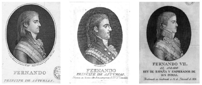 Estos incipientes y rústicos grabados fueron manipulados en las festividades realizadas en varias ciudades y pueblos de la Nueva España, Por ejemplo, para la ceremonia de jura que se ofreció en la villa de Zamora, en noviembre de 1808, le fue encargado al pintor de la Academia de San Carlos, don Juan José Aguilar, que elaborara el retrato de Fernando VII, pidiéndosele “esforzara todas sus habilidades”.78