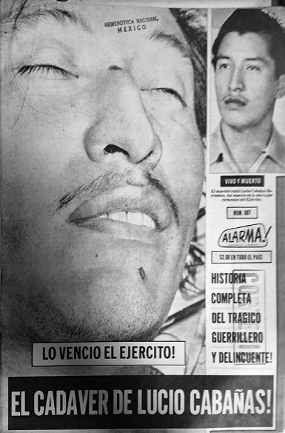 Tras la liberación de Figueroa, la campaña mediática fue atizada por el candidato, que describió una y otra vez a Cabañas como un ser sin valores con el que sería inútil dialogar. Comenzó así una etapa final dominada por una retórica de muerte inevitable. Los diarios ofrecían detalles sobre los avances de lo que se presentaba ya como una auténtica cacería: entrevistaban mandos militares, especulaban sobre el paradero del guerrillero e incluso anunciaron su muerte en más de una ocasión. Las declaraciones de Figueroa dieron a la persecución un tono de venganza entre machos que llevó a algunos periodistas, como Luis Suárez, a incluir aquel momento de violencia política en la retórica fantasiosa del western.32 El 2 de diciembre de 1974 el círculo militar y mediático trazado alrededor de Cabañas finalmente se cerró. El ejército mexicano acabó con la vida del maestro-guerrillero en la comunidad del Otatal, y los medios de comunicación obtuvieron la anhelada exclusiva.