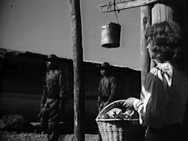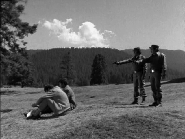Si las producciones industriales se cuidaban de ambientar estas representaciones de la violencia política en temporalidades remotas, varias cintas del cine independiente de aquellos años no tuvieron este cuidado. Aunque la trama central de El cambio (Alfredo Joskowicz, 1971) no es la insurrección armada, sino el enfrentamiento de dos jóvenes urbanos (Sergio Jiménez y Héctor Bonilla) con un México rural lacerado por la colusión entre caciques locales, empresas transnacionales y fuerzas armadas, el asesinato final de los protagonistas a manos de las fuerzas militares dejaba poco espacio a la interpretación sobre la violencia política que dominaba en el campo mexicano (véase la imagen 8). En 1974, con Meridiano 100, Joskowicz volvió al tema de la violencia política rural con una cinta dedicada por completo al aniquilamiento de la guerrilla de Guerrero. Si bien es verdad que Joskowicz, hombre de izquierda pero férreo crítico de la opción armada, traza una historia esquemática y fatalista en cuyo centro está la incomprensión política por parte de los guerrilleros sobre las condiciones sociales y culturales de las bases campesinas,35 el director no titubeó al mostrar en la pantalla referencias directas a la estrategia de terror político implementada contra los poblados guerrerenses, como la desaparición forzada o el hostigamiento militar contra las comunidades campesinas (véase la imagen 9).