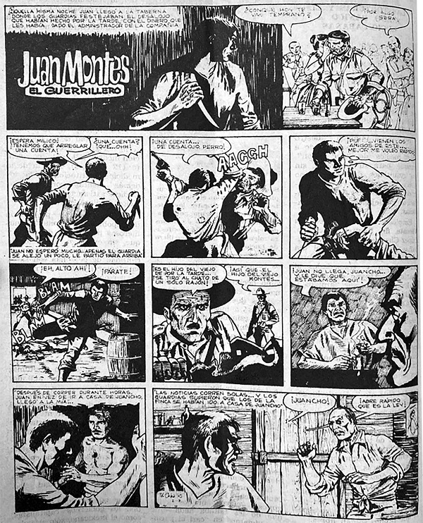 Ciertamente el caso de esta revista fue excepcional y no es éste el lugar para referirlo a detalle.24 Baste apuntar aquí que esta controvertida publicación, tras alcanzar fama entre el público juvenil durante el movimiento estudiantil de 1968, logró impresionantes niveles de venta durante los seis años de su publicación, cuyo tiraje, según Benjamin Smith, llegó a los 200 000 ejemplares semanales. Además, su diseño visual, que priorizaba las imágenes contundentes y los títulos breves y llamativos, la volvieron fácilmente reconocible entre el amplio público habituado al consumo de los tabloides y las revistas de nota roja.25 Envuelta permanentemente en la polémica y recibiendo fuego tanto desde la derecha (que la criticaba de pasquín subversivo) como desde la izquierda (que acusó en más de una ocasión a su director de ser un agente infiltrado), ¿Por qué? acompañó, difundió y defendió las luchas populares y, entre ellas, la insurgencia armada guerrerense.26 No sólo eso, durante 1972, la revista decidió incluir en sus páginas la historieta Juan Montes el Guerrillero, obra gráfica del cubano Ubaldo Ceballos López que se usaba en la isla para difundir entre el público empatía hacia la lucha armada (véase la imagen 3). Durante los años de su existencia, en más de una ocasión la revista defendió públicamente no sólo su posición política, sino también su estilo periodístico y denunció la hipocresía de otros medios que se servían del sensacionalismo para denigrar moralmente a los líderes guerrilleros.