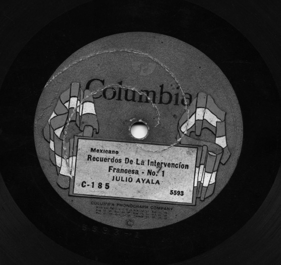 El primer disco de la serie iniciaba con el siguiente anuncio, realizado, tal vez, por el propio Ayala: “Recuerdos de la intervención, salida de las tropas francesas de la capital de la República”, primera parte. Repertorio Julio Ayala. Fonograma Columbia”.