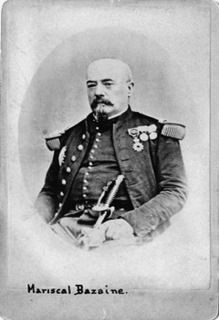 El general Bazaine mencionado por la multitud recreada en el disco era el mariscal François Achille Bazaine, quien se encontraba al mando del ejército invasor. Antes de su llegada a México, el alto oficial, nacido en Versalles el 13 de febrero de 1811, había desarrollado una carrera ascendente tras enlistarse a los 19 años de edad en el 37 regimiento de infantería. En 1854, durante la guerra de Crimea, recibió el grado de general de brigada y se mantuvo al frente de dos regimientos de la Legión Extranjera. Al siguiente año fue ascendido a general de división y se desempeñó como comandante militar de Sebastopol. Debido a su meritoria actuación, al retornar a Francia se le asignó el alto cargo de comandante de la 19ª división militar en Bourges. En 1863, el emperador Napoleón III depositó su confianza en él para que, junto al general Federico Forey, viajara a México con la misión de comandar al ejército interventor, el cual se encontraba bajo las órdenes de Charles Ferdinand Latrille, conde de Lorencez.