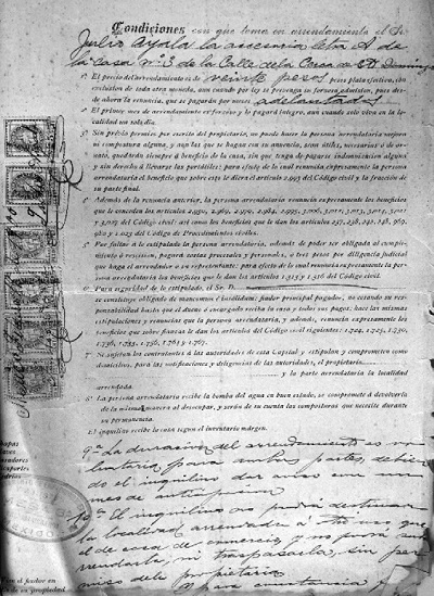Para el mecánico, la venta de una barandilla podía ser suficiente para resolver uno de sus principales gastos cotidianos: el costo de la renta del taller. Según el contrato de arrendamiento Ayala pagaba 20 pesos plata efectiva al mes por ocupar la accesoria letra A de la casa número 3 de la calle de la Cerca de Santo Domingo. Una cláusula manuscrita agregada al documento original manifestaba que la renta del local era para uso exclusivo como “casa de comercio”.19 Desconozco si para 1903 el arrendatario continuaba pagando el mismo precio por la accesoria.