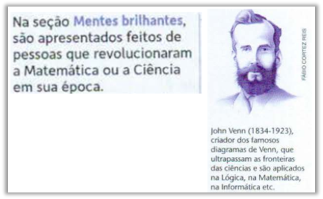 A questão de que o crivo europeu valoriza determinado fato, foi algo que observamos em outros momentos da abordagem histórica feita nos livros didáticos ao trabalhem com o conceito de conjuntos. Vejamos a seguir alguns desses momentos – Figuras 11, 12 e 13.