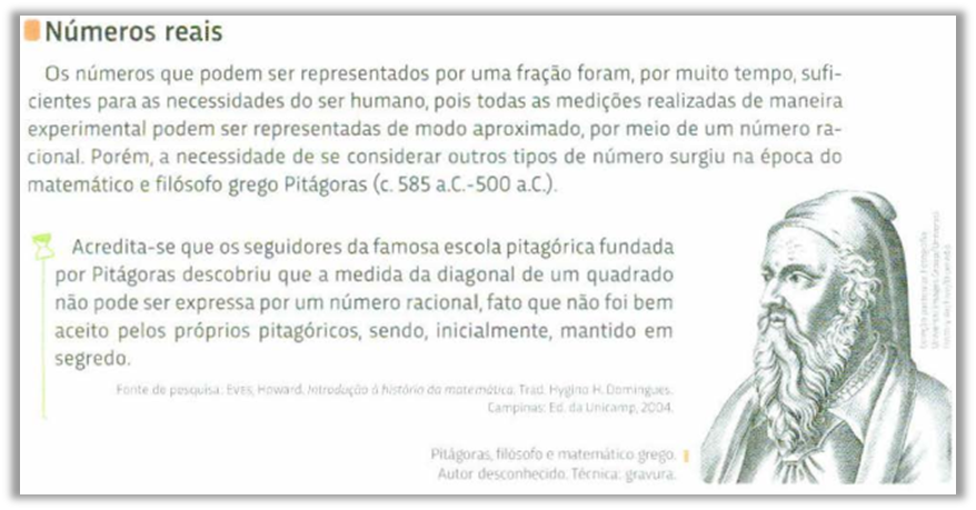 Essa maneira de apresentar a história da Matemática contribui para que o currículo de Matemática seja visto como um caráter estático, ou seja, inviabiliza que outros modos de vidas também possam ser representados. As enunciações a seguir, Figuras de 7 a 10, contribuíram para nosso pensamento acerca de uma hegemonia no currículo de Matemática.