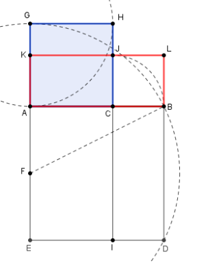 Como as equações (3) e (4) são equivalentes, temos que em um Retângulo Áureo o quociente entre os seus lados é igual à Razão àurea, ou seja, um retângulo é áureo quando o quociente entre a sua altura e a sua base é igual a(Figura 3).