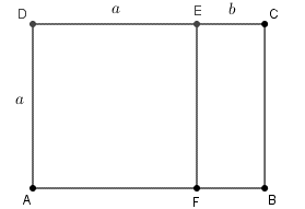 O Retângulo Áureo — ABCD Um retângulo é dito Retângulo Áureo (Retângulo de Ouro) quando dele suprimimos um quadrado, como ADEF , restando um retângulo, FECB, semelhante ao retângulo original (Figura 3). Isto significa que se e , e a, são as medidas dos lados do retângulo original, então