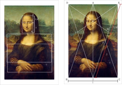 Ao falar de Leonardo Da Vinci, comentamos sobre suas obras e relações com a Matemática, e citamos duas delas: A Virgem dos Rochedos e A Mona Lisa. É em A Mona Lisa que faremos nossas discussões, buscando detectar nela a presença da Razão Áurea por meio do Retângulo Áureo. Sabemos que seu autor, Leonardo Da Vinci, era um aficionado por Matemática e defendia que um pintor deveria estudar Matemática e aplicá-la em suas obras. Na Figura 5, fazemos uma análise dessa obra, mostrando a presença de alguns retângulos áureos, dando a mesma um padrão de beleza, simetria e harmonia.