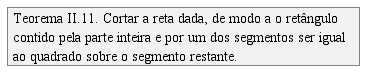 Vamos usar a versão de Euclides para interpretar geometricamente o “problema de divisão de um segmento em média e extrema razão”, que será mostrado na seção seguinte.