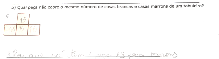 *Escrita do aluno: Porque a peça “e” cobre mais marrons do que branca ou mais brancas que marrons dependendo da sua posição.