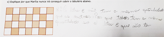 (Dados da Pesquisa)*Escrita do aluno: Porque a peça “e” cobre mais marrons do que branca ou mais brancas que marrons dependendo da sua posição.