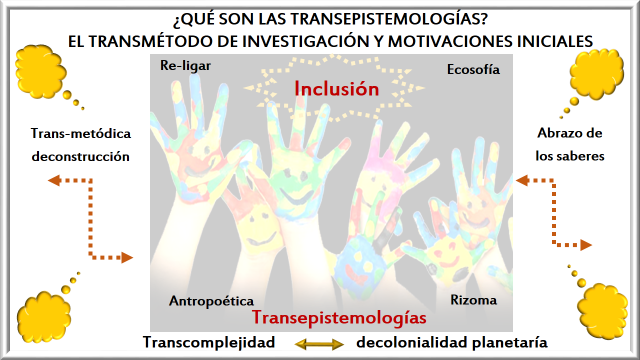Todo ello, para analizar transepistemologías inclusivas en la Educación Matemática Decolonial Transcompleja como objetivo complejo de investigación. Es urgente ya saber que: ¿Qué son las transepistemologías? La semántica de transepistemologías va más allá de las epistemologías tradicionales; ¿Qué significa la transepistemologías? la noción de las transepistemologías, “como campo epistémico que soportaría la investigación transcompleja como un enfoque que va más allá de la explicación e interpretación (…) es una postura que aboga por un sentido incluyente, convivencial y holístico del conocimiento” (SCHAVINO, 2013, p. 75).