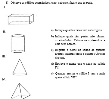 Apresentamos na Figura 2, Tarefa dos sólidos geométricos, outro exemplo de tarefa que prioriza a leitura visual e a técnica como direção para a sua resolução.