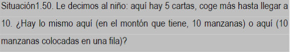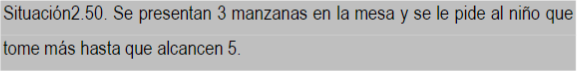 Si el niño no realiza correctamente la situación1.50, realizará la Situación 2.50, que es más fácil que la Situación1.50 pero que implica la misma lógica matemática o competencia que en este caso es el cardenal.
