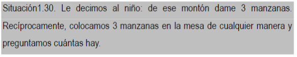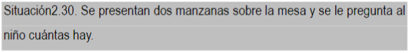 Si el niño no ha realizado bien la situación1, se presenta la situación2.30, que es más fácil que la situación1.30 pero que implica la misma lógica matemática o competencia que en este caso es el cardinal.