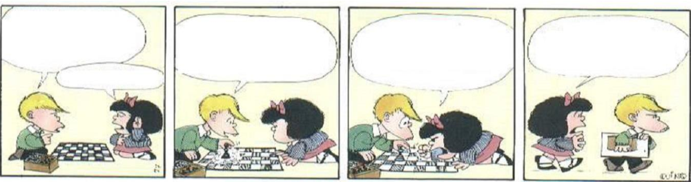 Em especial nas pesquisas que têm como finalidade avaliar o desenvolvimento da criatividade, é utilizada, com maior frequência, a apresentação de imagens aos estudantes, como as da Figura 1, em que é solicitado que criem problemas a partir da observação e discussão da tirinha.
