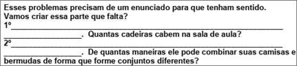 Atividades como a apresentada na Figura 3 podem ser realizadas a partir de situações criadas pelo professor ou adaptadas de questões ou problemas retirados dos livros didáticos, excluindo as perguntas e pedindo que os estudantes as criem.
