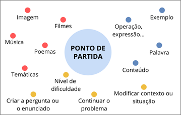 Como ponto de partida com indicativo mais fechado em relação ao conteúdo matemático, tem-se propostas que envolvem: fornecer uma palavra que remete ao conteúdo — “vezes”, para a multiplicação; “mais”, para a adição —; indicar uma palavra/contexto (baralho, senha, fila) e/ou um conteúdo matemático (análise combinatória); apresentar uma operação ou uma expressão matemática a ser utilizada.