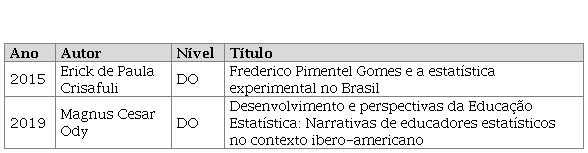 No tema história da Estatística, encontramos duas teses, descritas no Quadro 4.